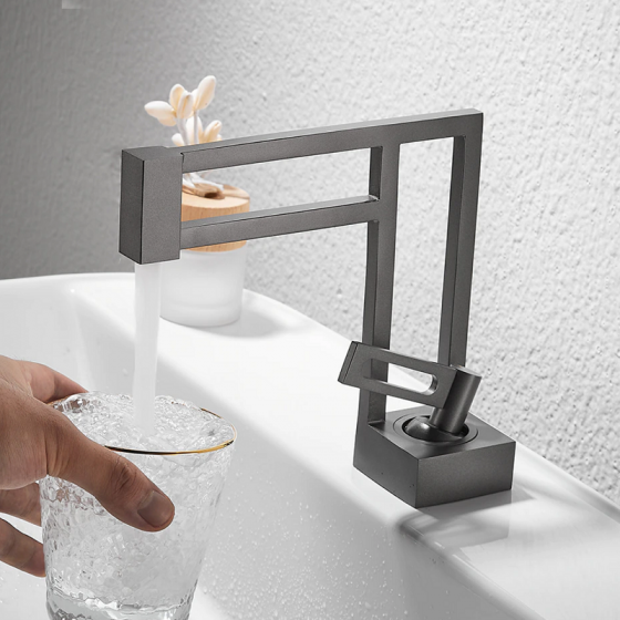 Le mitigeur à poser design, anthracite Cry ajoute beaucoup d’esthétique contemporaine à votre salle de bain. Le cadre incliné creux ajoute un attrait géométrique et amusant. Le bec verseur aéré de ce mitigeur offre une eau abondante et sans éclaboussures pour le lavage, facile à nettoyer et à entretenir. De plus, la poignée unique offre un contrôle précis et sans effort du débit et de la température. La fabrication en laiton massif résiste à la corrosion et au ternissement pour un éclat et une beauté éternels. Un ajout chic et moderne à votre salle de bain !
