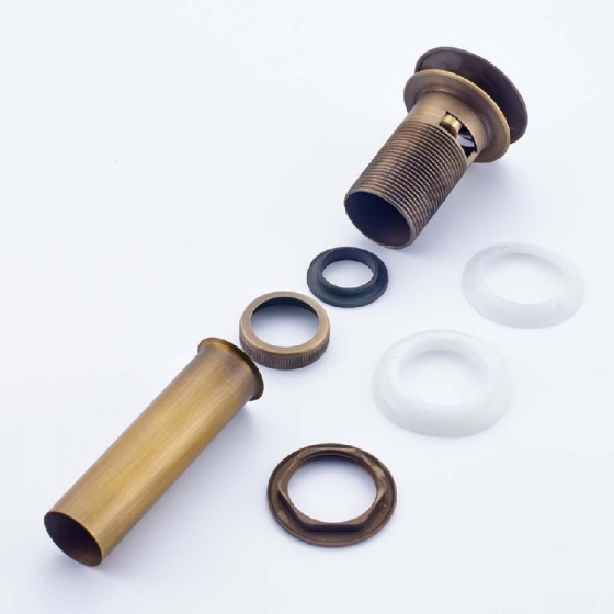 Siphon de lavabo avec système clic clac et trop plein, bronze antique
