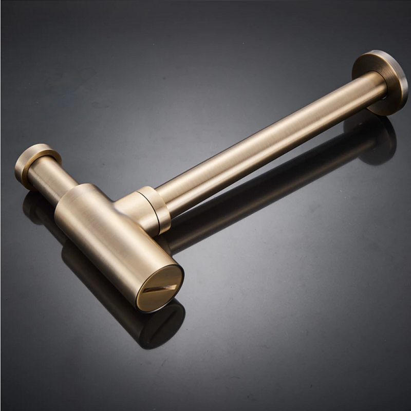Siphon de lavabo avec évacuation sans trop plein, bronze antique