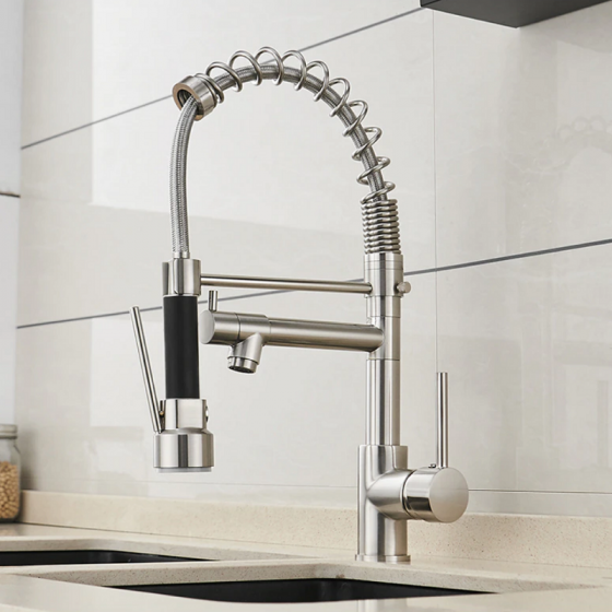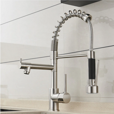 Si vous aimez un robinet de cuisine avec la finition Nickel brossée, alors ne cherchez plus car ce mitigeur de cuisine Ribia est absolument magnifique et sera le point central de votre belle cuisine avec sa fabrication en laiton pure. Il est facile d'en tomber amoureux car il brille comme un diamant et sa cartouche en céramique de haute qualité garantit que votre robinet durera des années. Il est doté d'un bec rétractable qui facilite votre lavage, d'une douchette à 2 jets avec fixation magnétique incluse, et son processus d'installation simple sera terminé en un rien de temps. Vous allez adorer cet évier à la maison, alors n'hésitez pas à vous le procurer tout de suite. Sans oublier sa garantie de 2 ans.