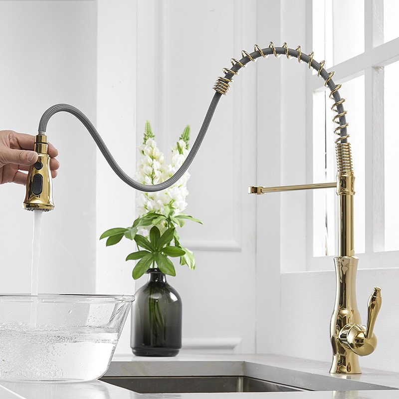 Design exquis, ce robinet haut de cuisine Like est parfait pour votre cuisine. Ce magnifique robinet mitigeur de cuisine est en laiton avec une finition dorée qui permet à ce robinet de cuisine de briller comme un diamant. Il faut le voir pour croire à quel point il est beau en personne et sa cartouche en céramique de haute qualité garantit un fonctionnement sans problème et des performances sans gouttes. Il est doté d'un bec rétractable pour un lavage facile et d'une douchette à 2 jets avec fixation magnétique. Il est facile à installer, alors ne cherchez pas plus loin pour vos besoins d'évier à la maison car vous allez l'adorer.