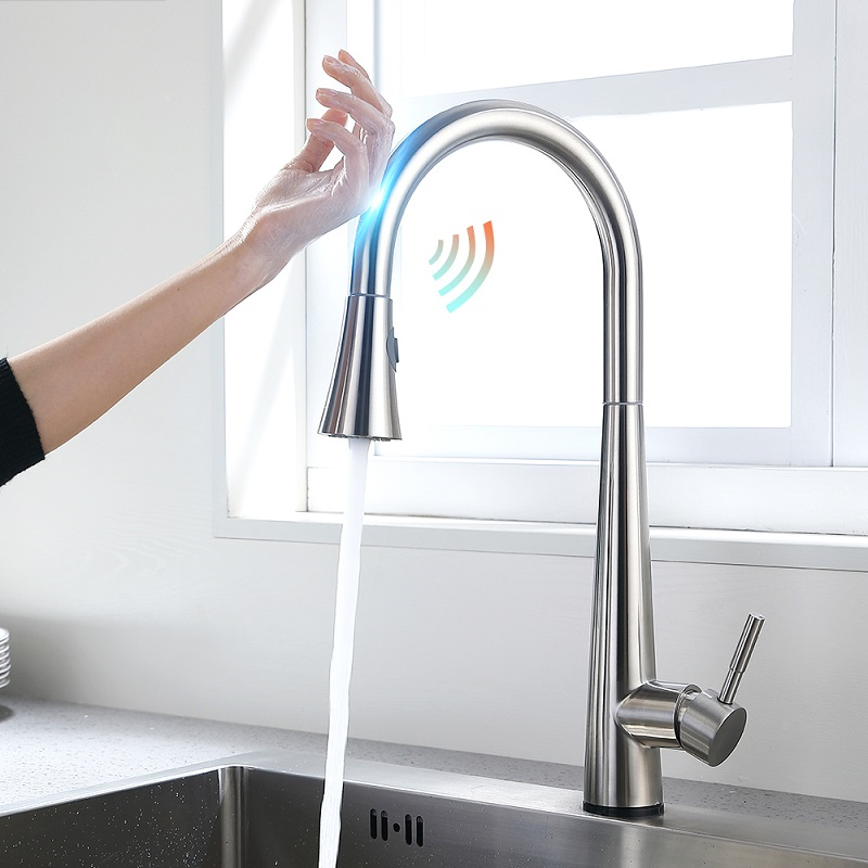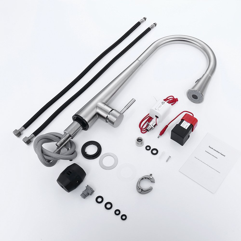 Ajoutez style et intelligence au décor de votre cuisine avec le robinet intelligent Tayo. Doté de la technologie SmartTouch qui ouvre et ferme automatiquement l'eau lorsque vous touchez son bec ou le corps du robinet, ce robinet comprend d'autres caractéristiques pratiques : une douchette à main à 2 jets avec fixation magnétique pour une expérience d’utilisation inégalée, une cartouche en céramique pour des performances supérieures et une construction en laiton avec finition argenté. La hauteur du bec est parfaite pour remplir facilement les casseroles. L'élégante poignée à levier en acier inoxydable complète le look de ce robinet élégant en ajoutant une touche de grâce et de confort à votre évier de cuisine. Sans oublier sa garantie de 2 ans.
