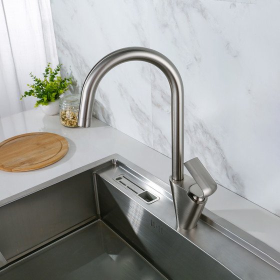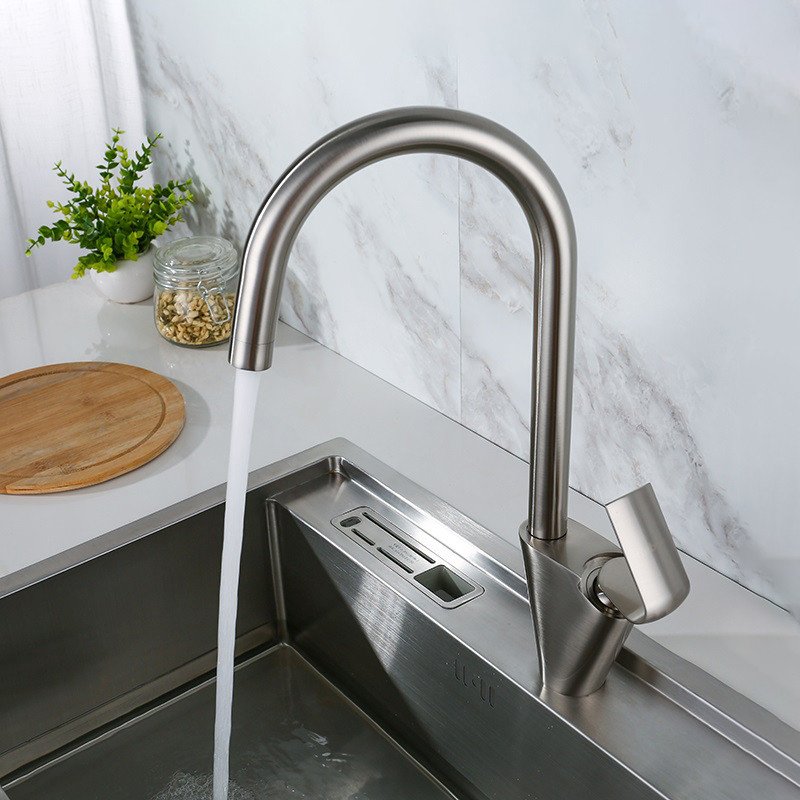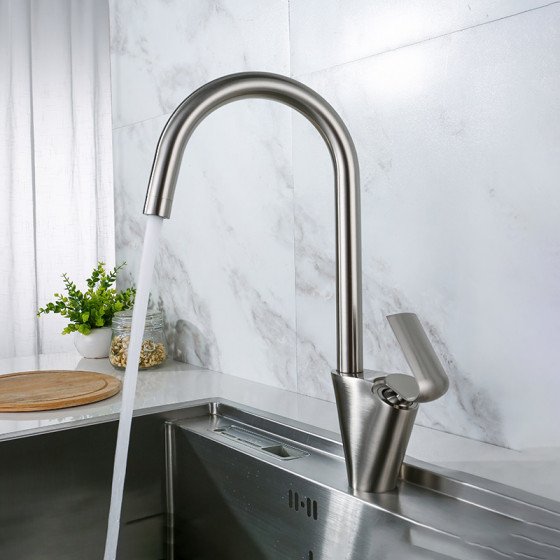 Ce robinet mitigeur de cuisine Blic, est le robinet de référence ! Vous allez adorer la commodité et les performances supérieures de ce robinet. Il est également doté d'une rotation très impressionnante. La hauteur et l'angle du bec de ce robinet sont excellents, ce qui permet de remplir facilement les casseroles. Il est entièrement fabriqué en laiton pur avec une finition en nickel satiné. Le débit d'eau est régulier et constant grâce à sa cartouche en céramique, avec une pression suffisante pour un réel pouvoir de nettoyage. Une pognée assez original et un fonctionnement classique avec une garantie de 2 ans vous permet d'avoir l'esprit tranquille.